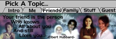 I've saved this spot for a few special friends who have known me through the years and those who have grown close to me in a short time. It's a sorta Ode to my friends kinda thing.